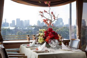 窓一面に広がる皇居の杜が